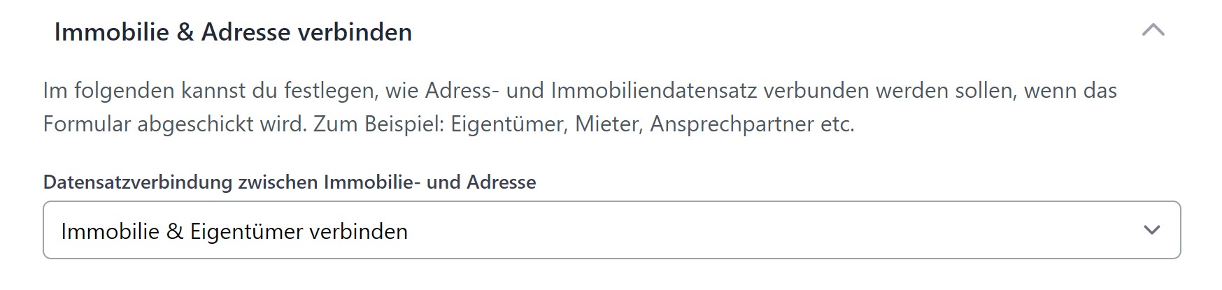 Wird mir dem Formular eine Adresse und eine Immobilie angelegt (oder bearbeitet), kannst du hier auswählen, wie diese verbunden werden soll