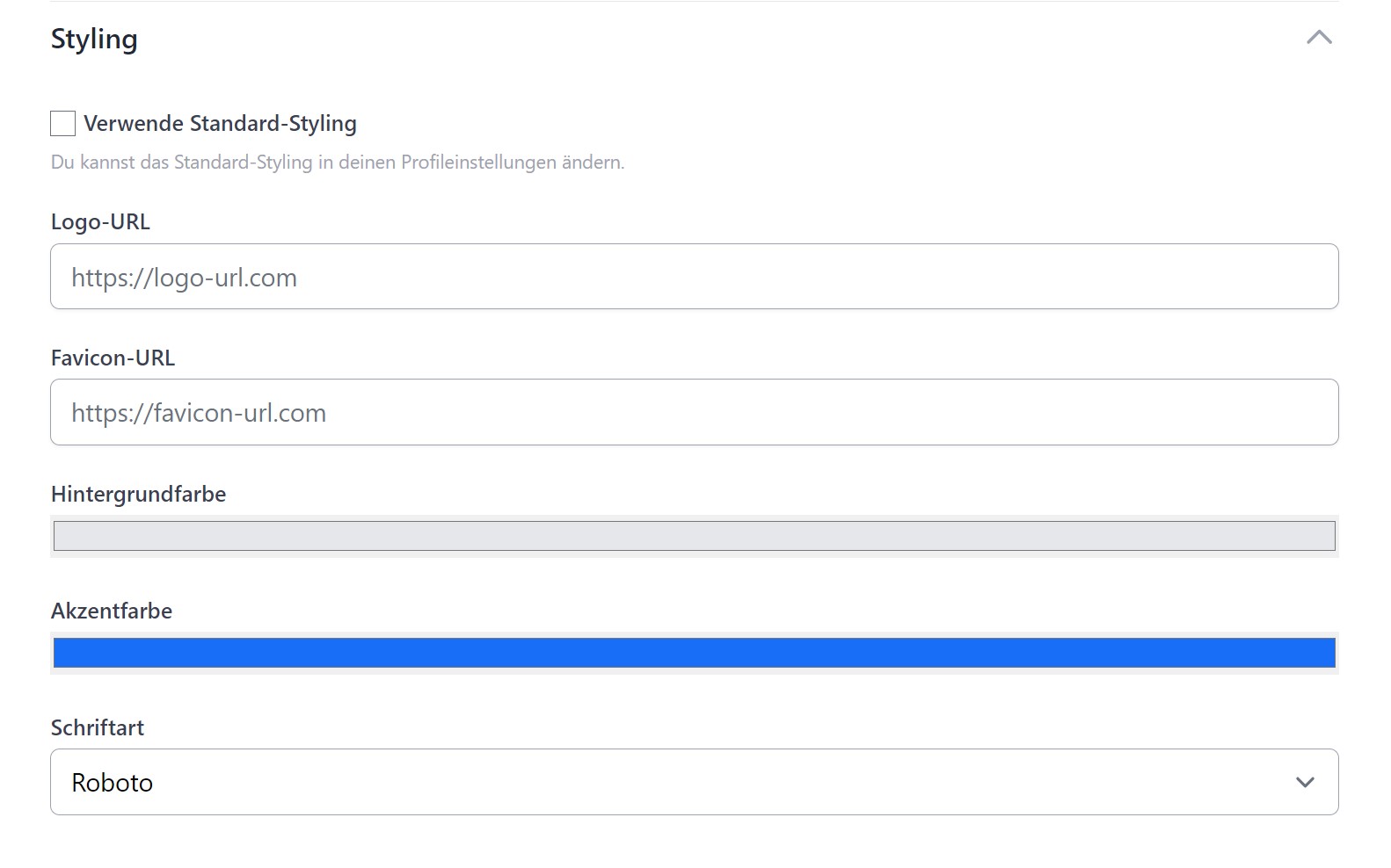 - Verwende das Standard-Styling aus den Account-Einstellungen: Dies ist per Default ausgewählt. Ist der Haken gesetzt, werden die Styling-Angaben aus