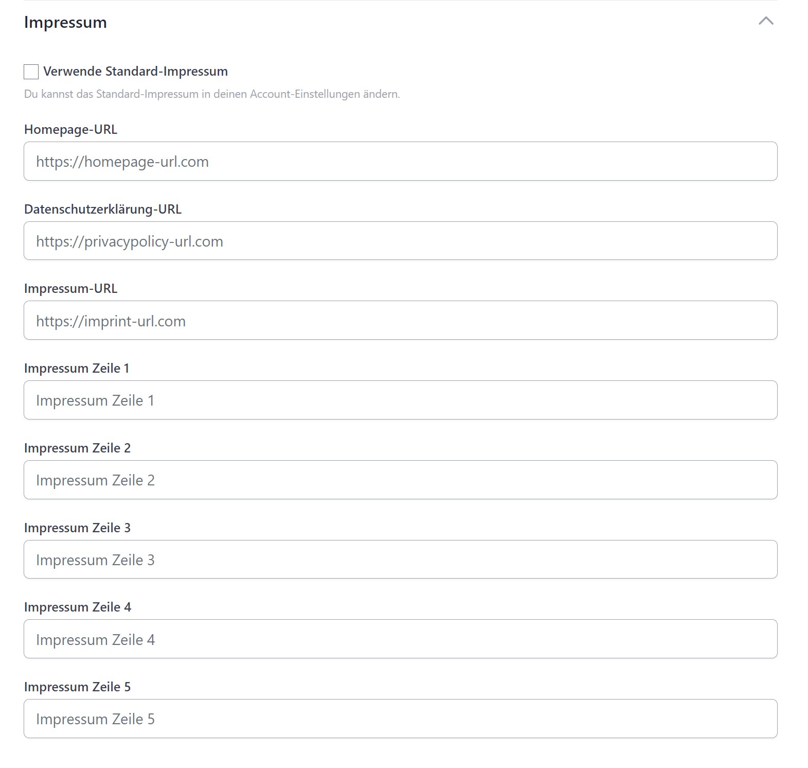 - Impressum-URL: Der Link zu dem Impressum auf deiner Homepage.