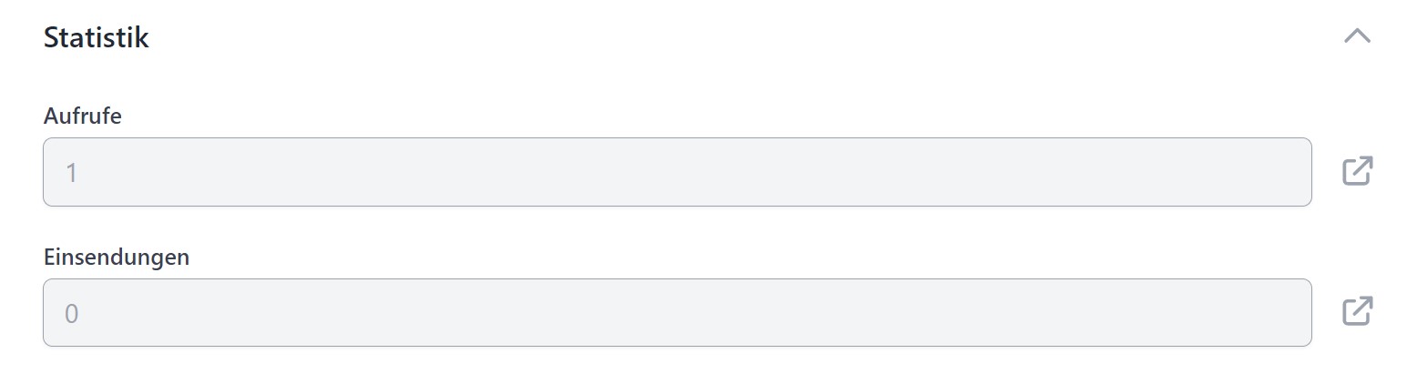 - Aufrufe: Anzahl der Aufrufe des Formulars. Mit Klick auf das Link-Icon am Ende der Zeile oder auf die Anzahl