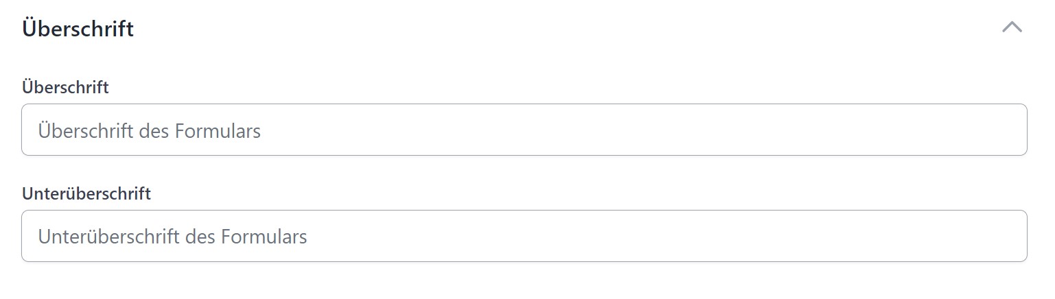 - Überschrift: Die Überschrift, die über dem Formular angezeigt werden soll. Kann auch leer gelassen werden, dann
