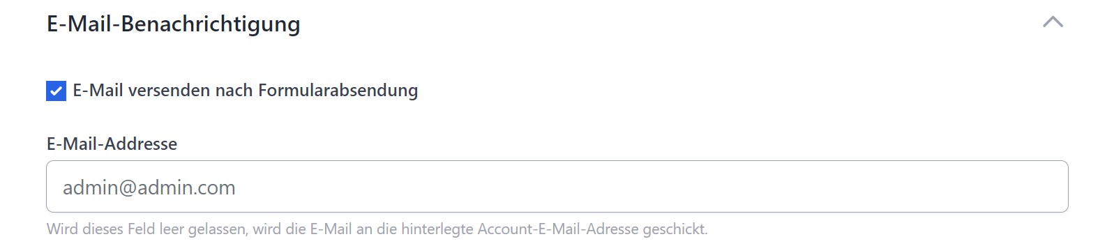 - E-Mail-Adresse: Lässt du das Feld leer, wird die E-Mail an deine propform.io-Account-E-Mail-Adresse geschickt.