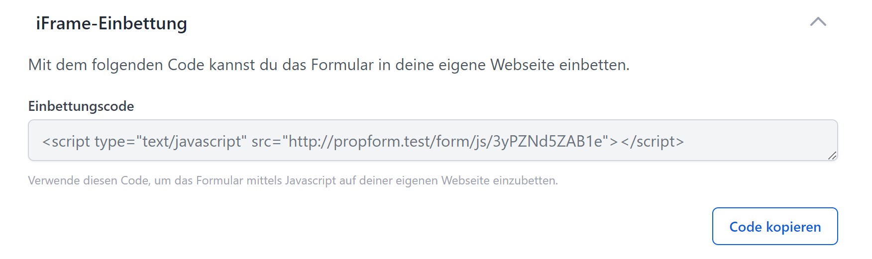 Wenn du diesen Code-Schnipsel in deine Website kopierst, kannst du Formulare auch direkt in deiner Website einbetten.