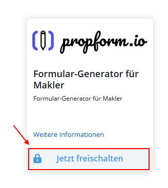 - Suche nach dem Dienst "propform.io" & klicke auf "Jetzt freischalten".