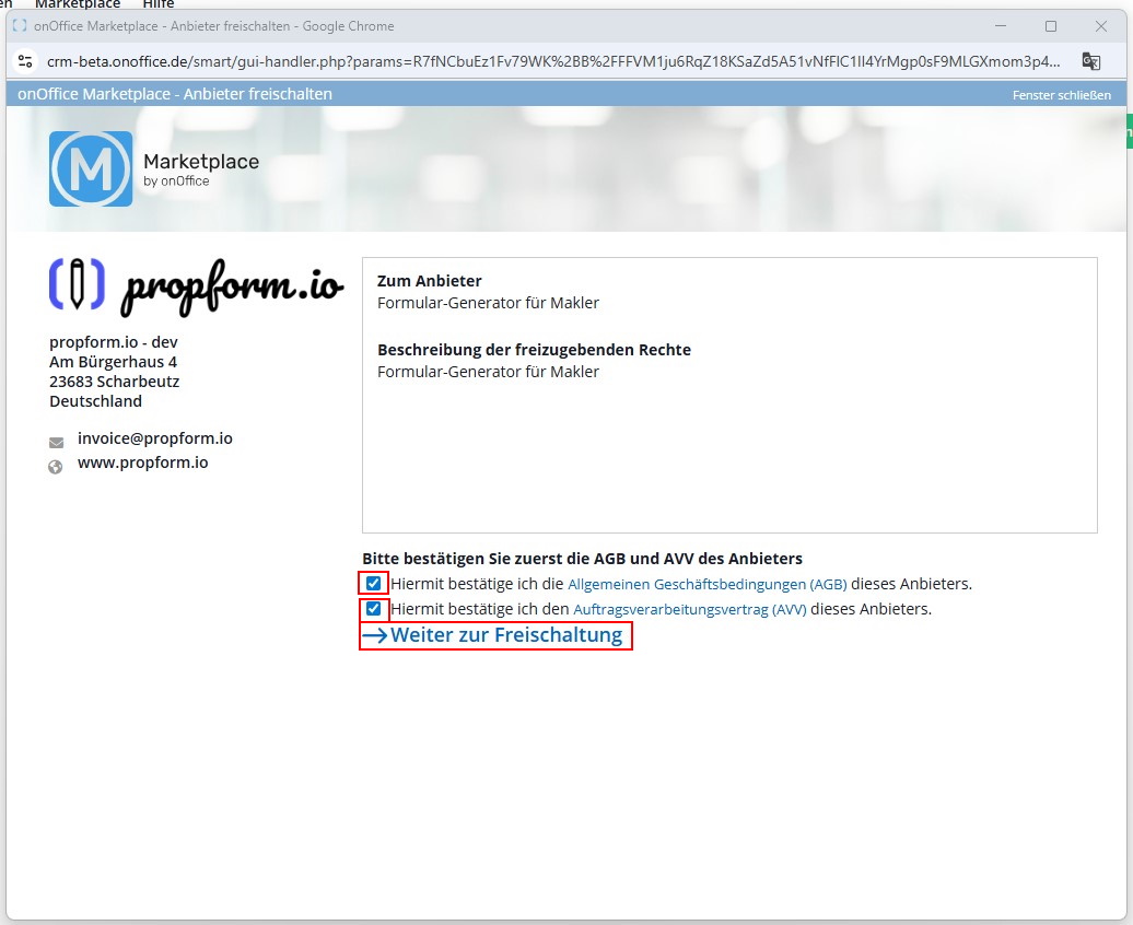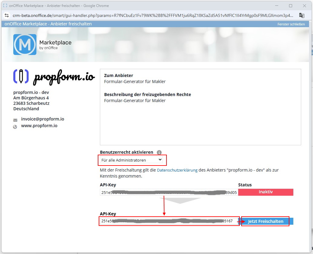 propform.io freischalten im onOffice Marketplace