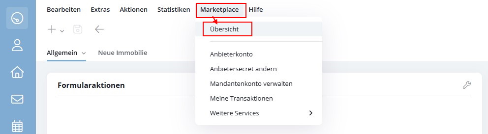 - Klicke in der onOffice-Menüleiste auf "Marketplace"->"Übersicht".