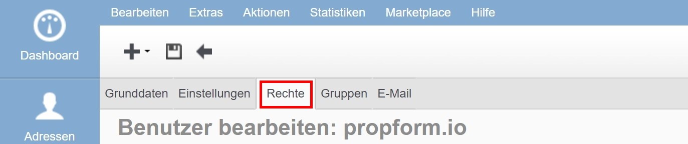 Damit deine propform.io-Formulare richtig funktionieren, benötigt der onOffice-API-Benutzer diverse Rechte. Im "Benutzer bearbeiten"-Menü des API-Benutzers von onOffice auf dem Reiter "Rechte" kannst du die Rechte definieren.