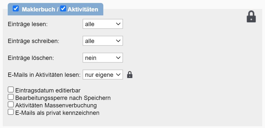 - Betreuer ändern: aktiviert (optional, falls du den Betreuer von Immobilien- oder Adressdatensätzen mit einem Formular ändern können willst.)