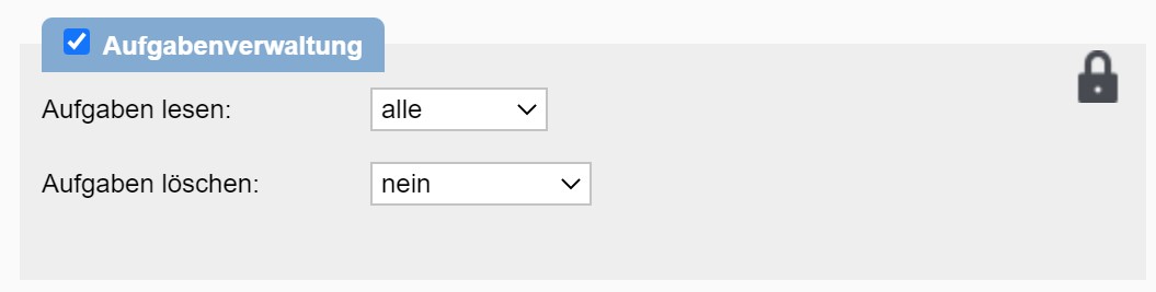 - Aufgabenverwaltung (Haken links neben der Kategorieüberschrift): aktiviert